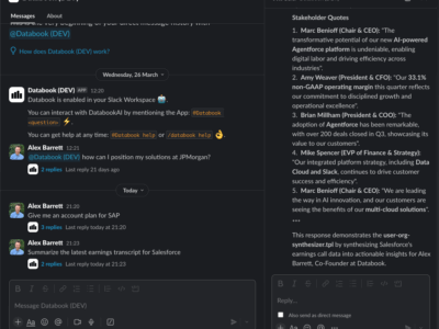 You can now chat directly with Databook inside Slack — making it faster for sellers to run workflows and access insights where they already work.