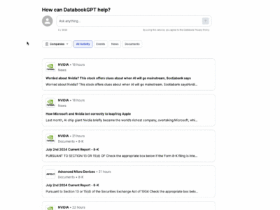 Stay on top of your followed accounts with a new Activity Feed in DatabookAI — so you can track key updates without jumping between pages.